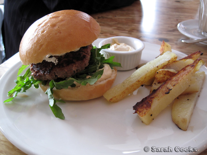 My friend ordered the lamb burger with chips. It was $18 on the menu, but only came up as $16 on the bill, wahey! I have to admit I was a little skeptical when I saw it, as the burger was quite small, and the chips didn't look crispy - I think it's one big potato slice, fried on either side and then cut into chip shapes - but by all accounts the lamb burger was fabulous! It had a soft bun, and generous amounts of sauce, feta and rocket. It looked small, but was a satisfying lunch.